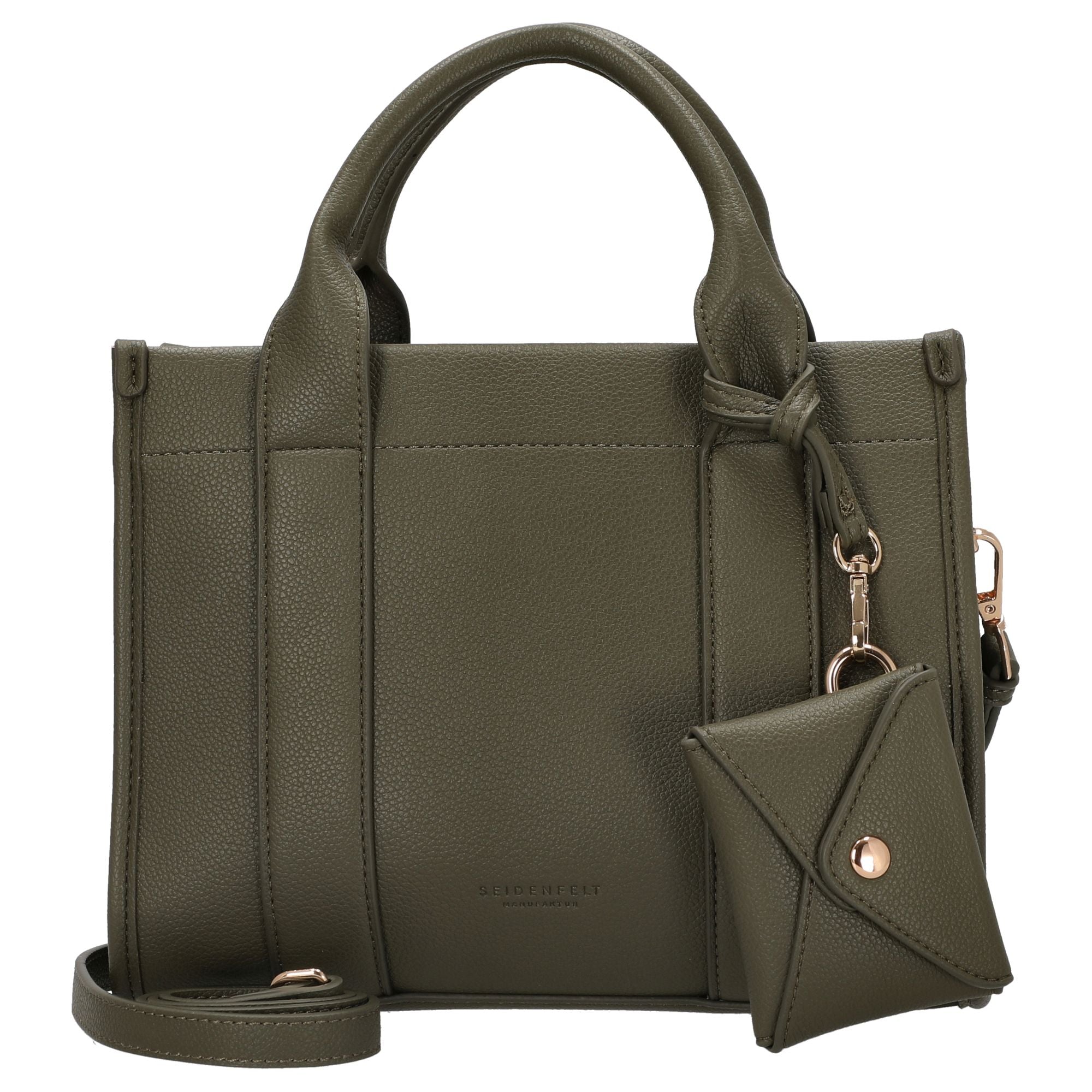 Die SEIDENFELT MANUFAKTUR Meloy Tote ist eine elegante Handtasche in olive, die durch ihr schlichtes, eckiges Design modische Akzente setzt. Ob klassisch in der Hand getragen oder lässig crossover mit dem Schulterriemen – sie passt sich vielseitig Ihrem Stil an.