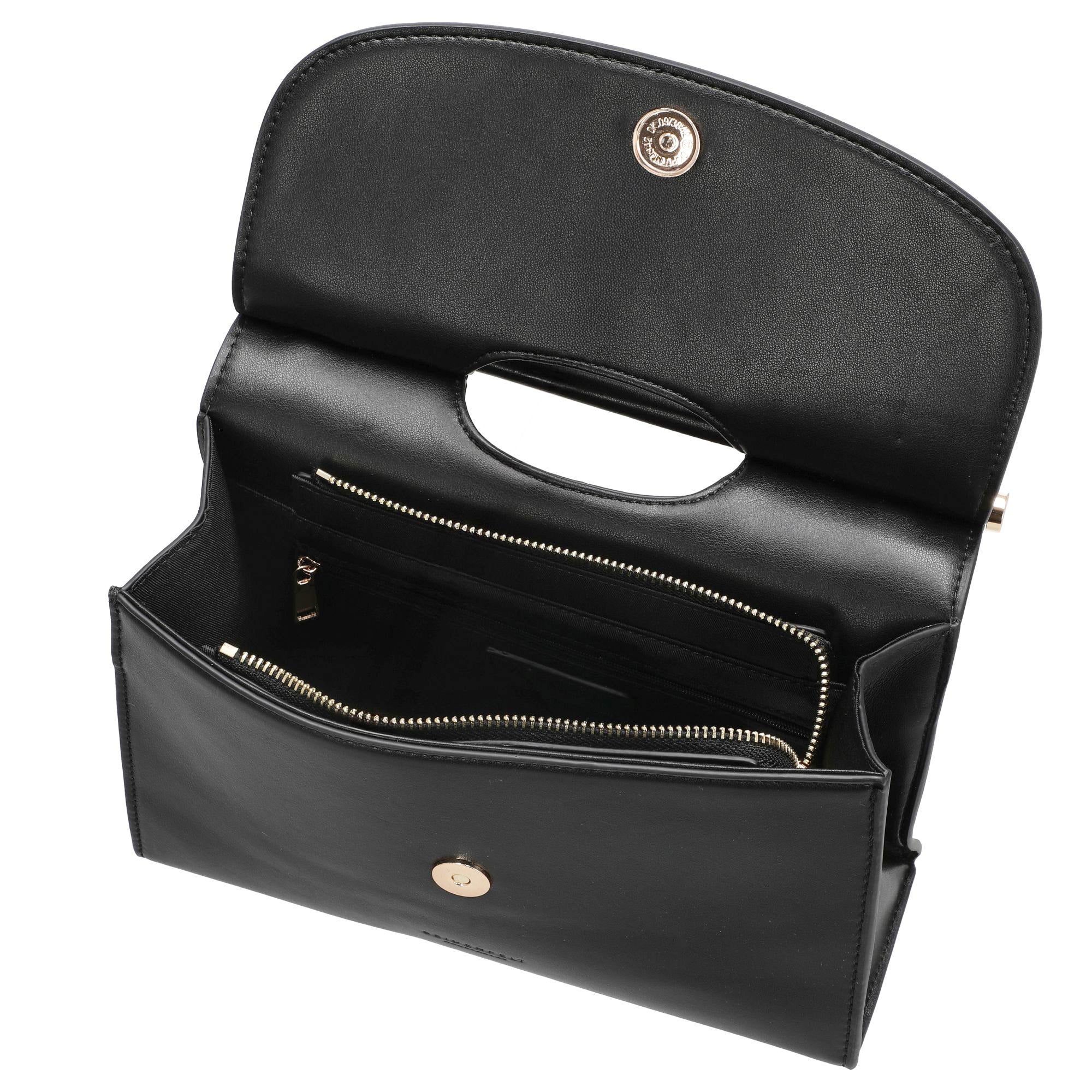 - Innenaufteilung – ein Reißverschlussfach und ein Einschubfach bieten Ordnung für kleine Essentials wie Lippenstift oder Taschentücher