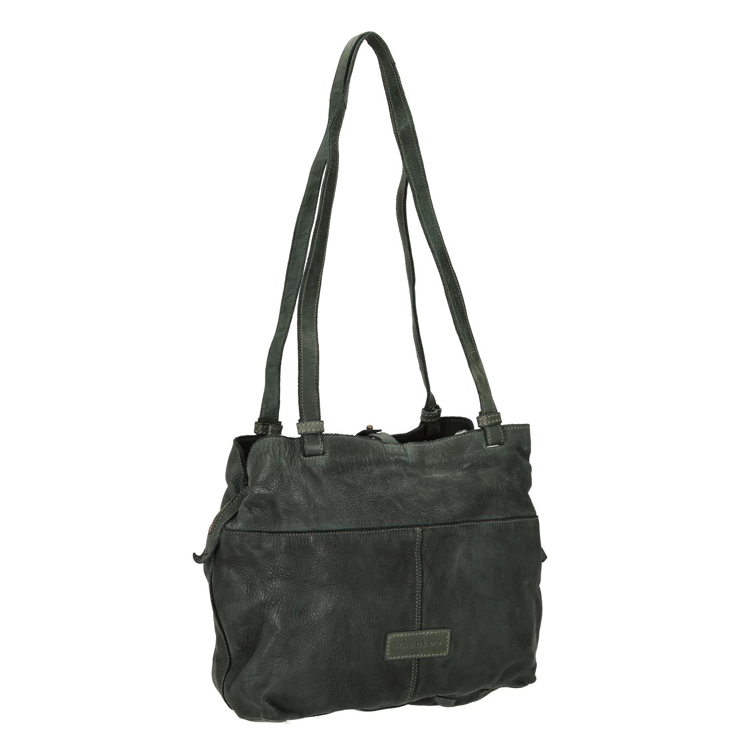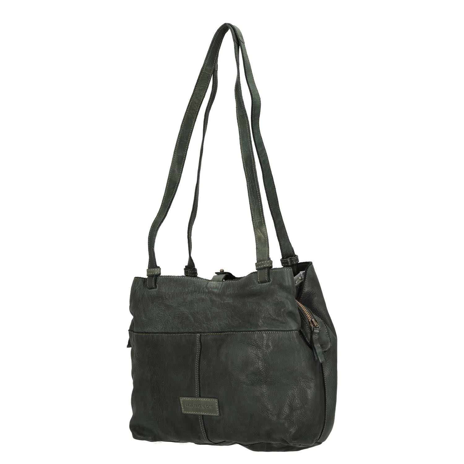 Découvrez le Harolds Submarine Shopper dans une élégante teinte verte, qui allie parfaitement style et fonctionnalité. Ce sac à la mode en cuir de bovin de haute qualité, lavé, se distingue par sa surface légèrement brillante et sa texture agréable, ce qui en fait un compagnon idéal pour toute occasion.