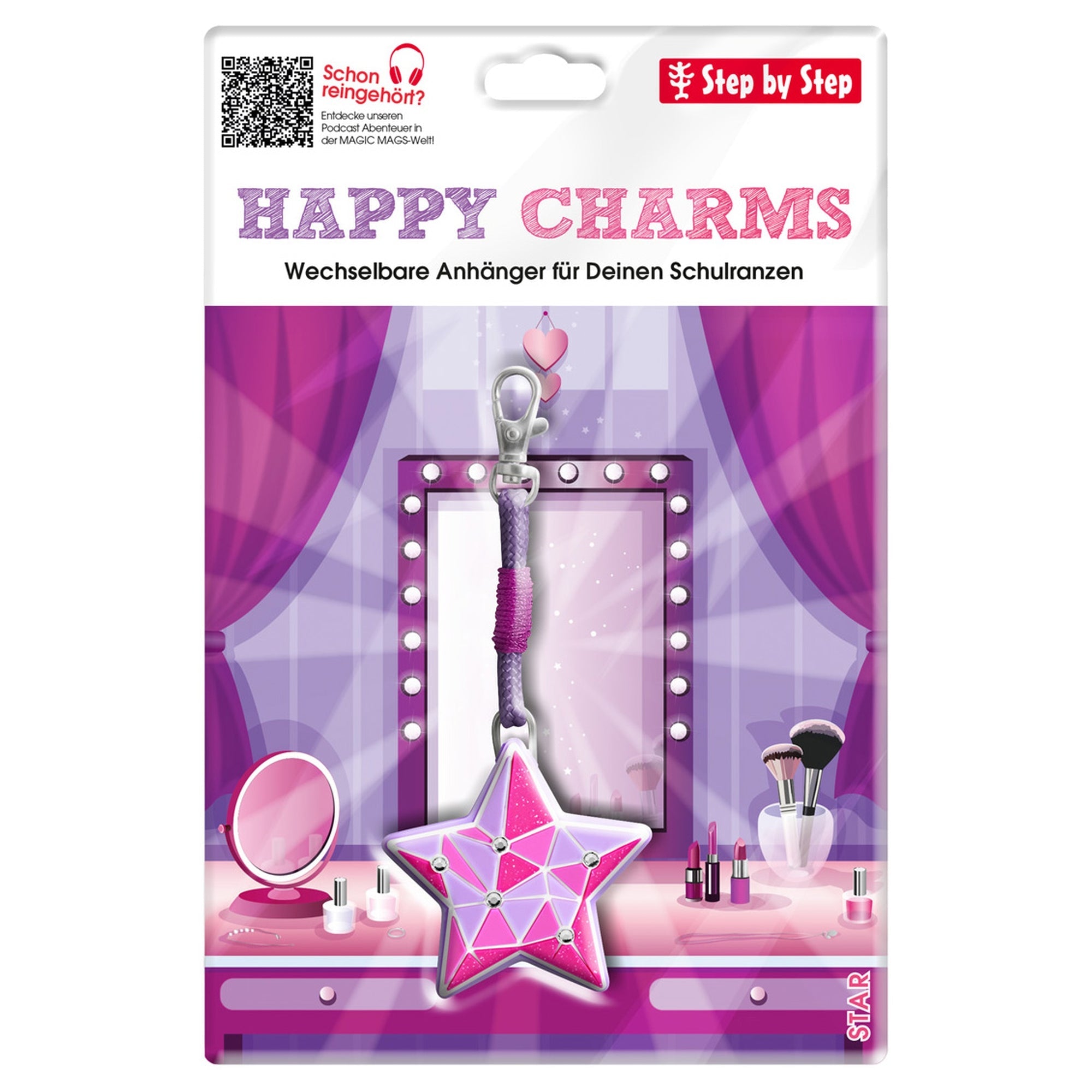 Le pendentif Step by Step HAPPY Charms en forme d’étoile est le complément parfait pour le cartable de votre enfant. Grâce à son design pratique, le pendentif peut être fixé de manière flexible aux boucles du rabat ou de la poche avant, apportant ainsi une touche individuelle et un style personnel.