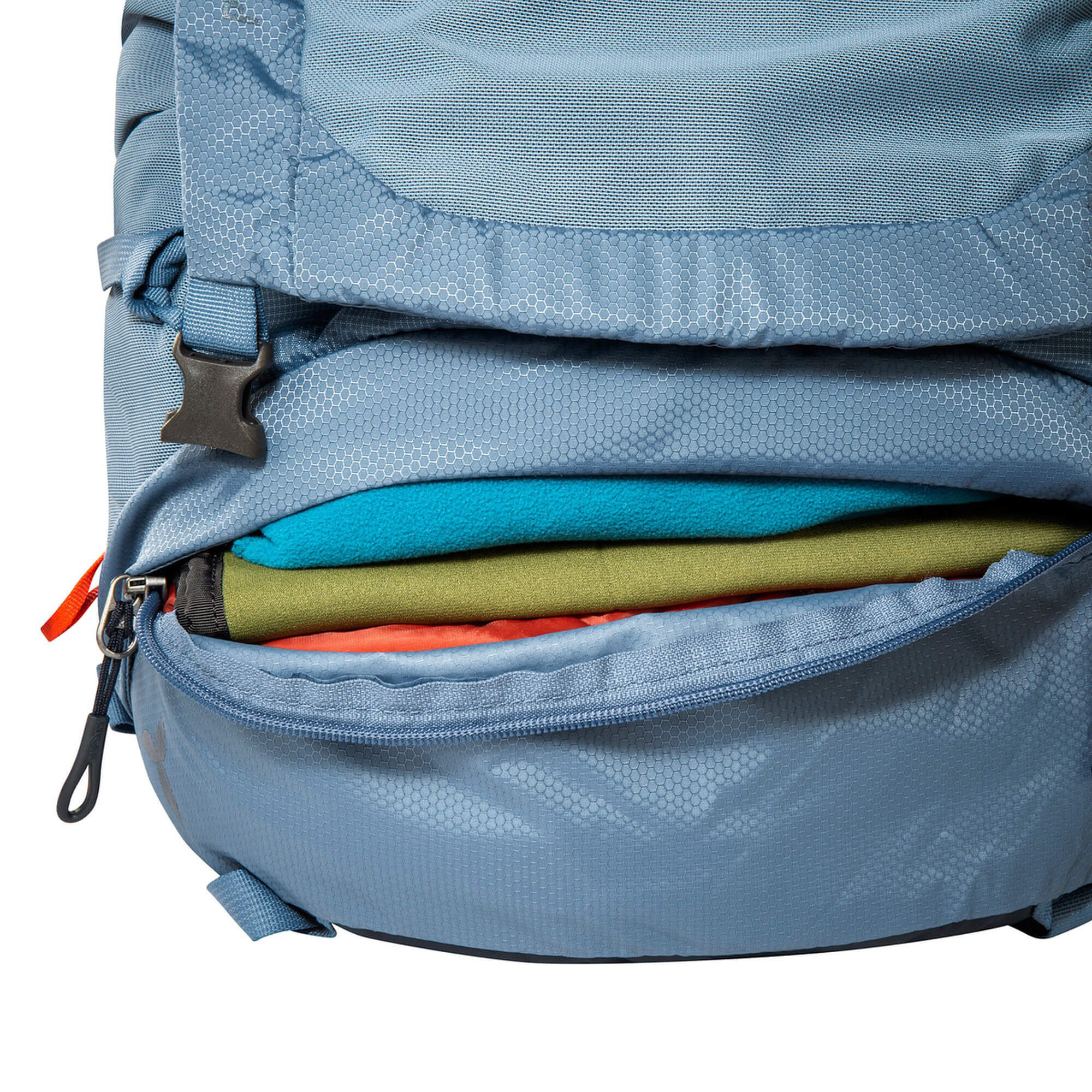 L'équipement extérieur comprend des fonctionnalités pratiques telles qu'un support pour bâtons de randonnée et piolet, des poches en filet latérales et des sangles de matériel. À l'intérieur, vous trouverez de la place pour tout ce dont vous avez besoin, et grâce à la compression de fond tout autour, vos bagages restent toujours compacts et sécurisés.