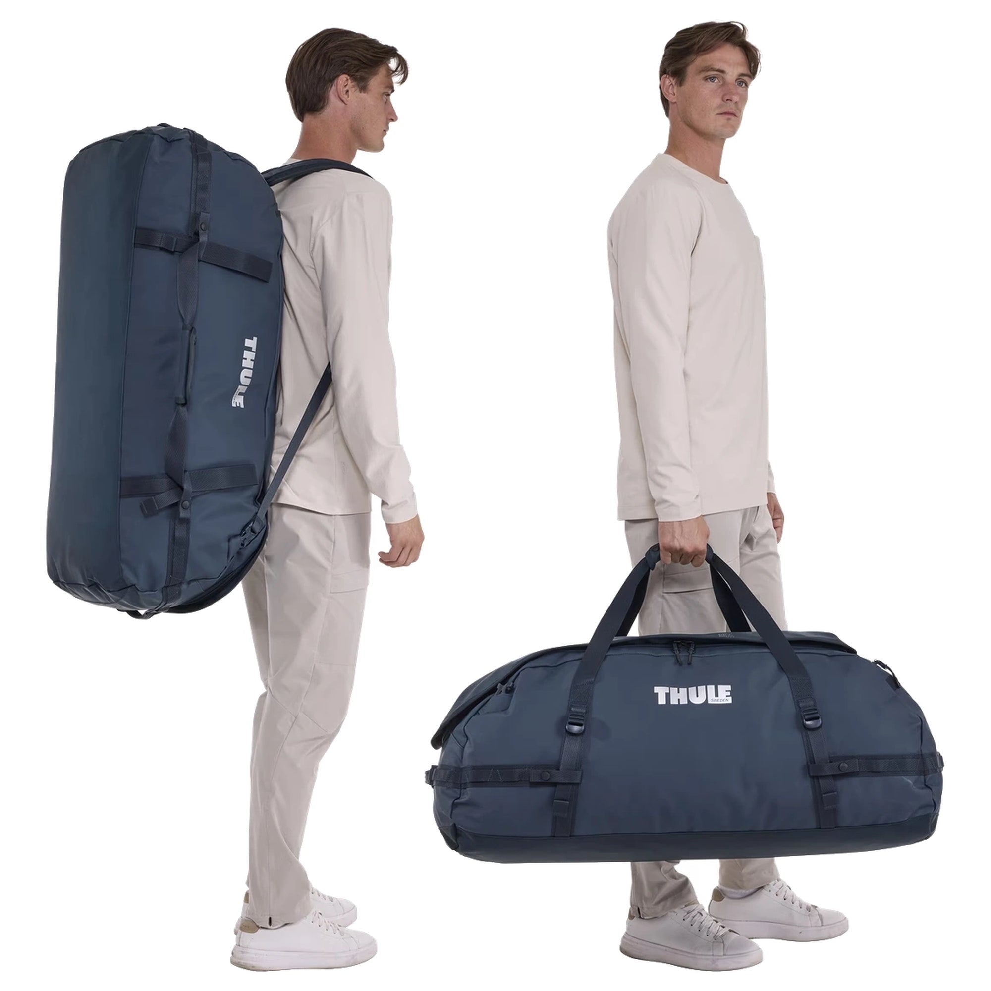 Le Thule Chasm 130 est un sac de voyage fonctionnel de couleur bleu très foncé, offrant un volume de 130 litres pour accueillir un grand nombre d’équipements et de bagages. Avec un poids de 2,45 kilogrammes, il reste maniable malgré sa taille.