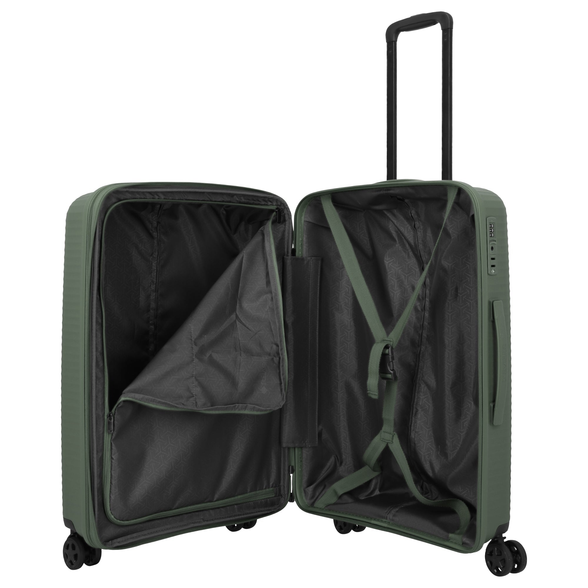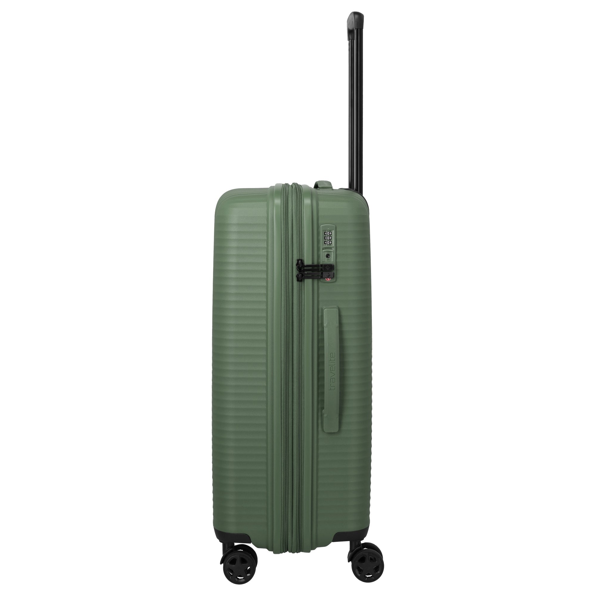 Le Travelite Air Stripe trolley à 4 roulettes en vert est un compagnon polyvalent pour les voyageurs exigeants qui accordent de l'importance à la flexibilité et à la sécurité. Avec sa coque robuste en polypropylène, il allie légèreté et grande résistance.