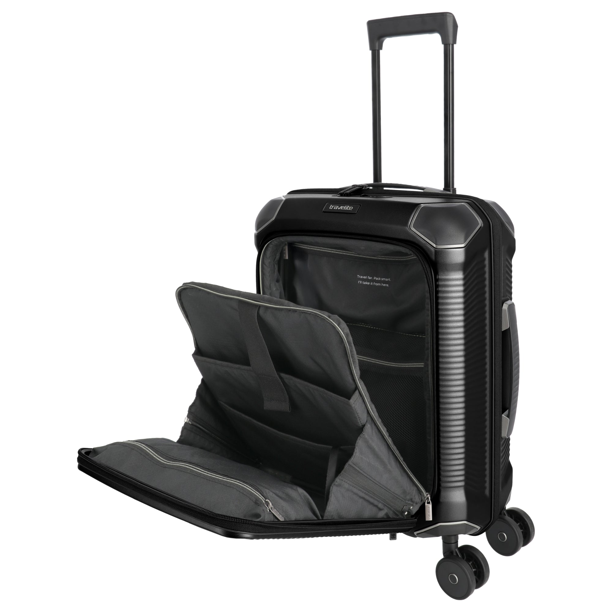 Travelite Millennium - Trolley cabine à 4 roulettes avec poche avant S 55 cm (noir)