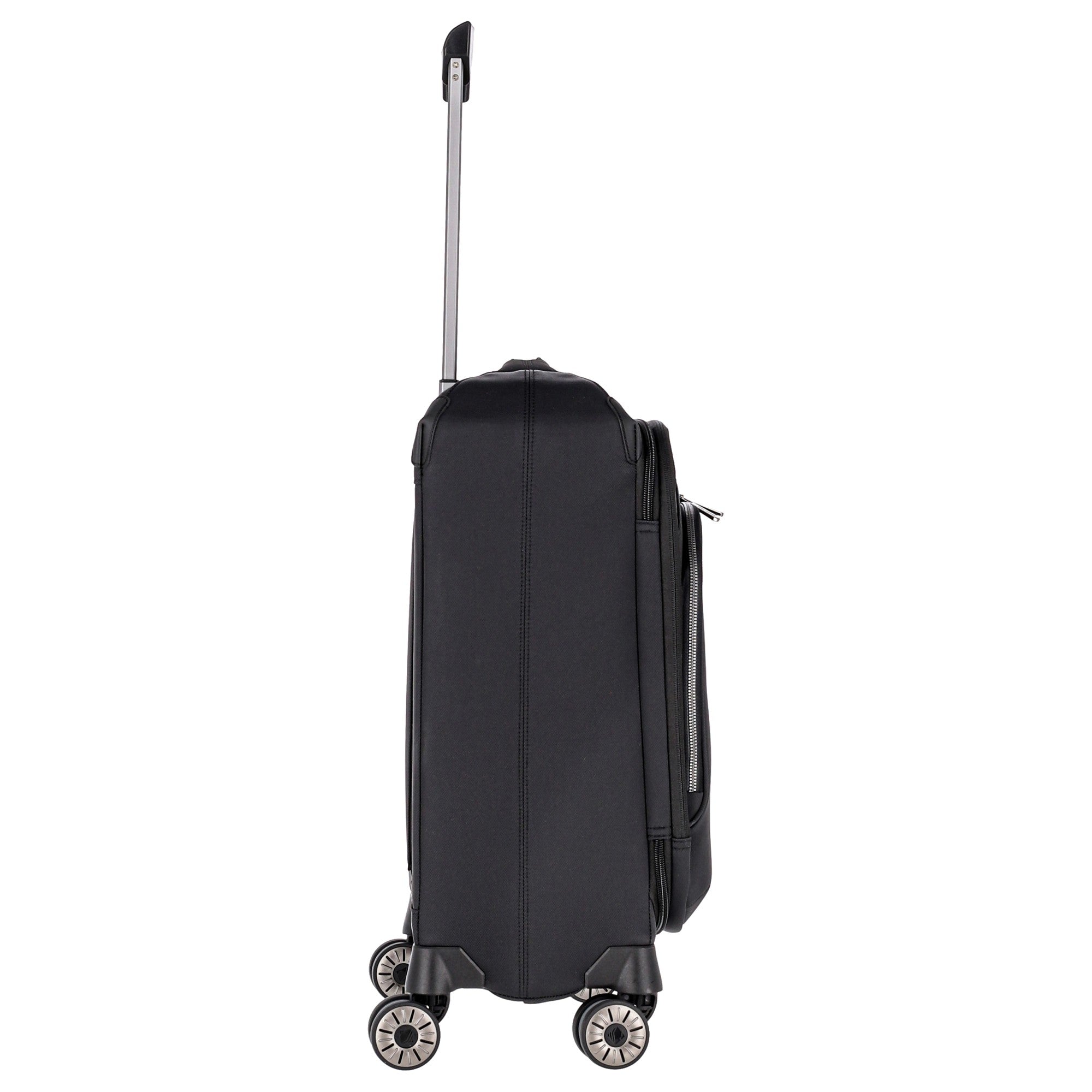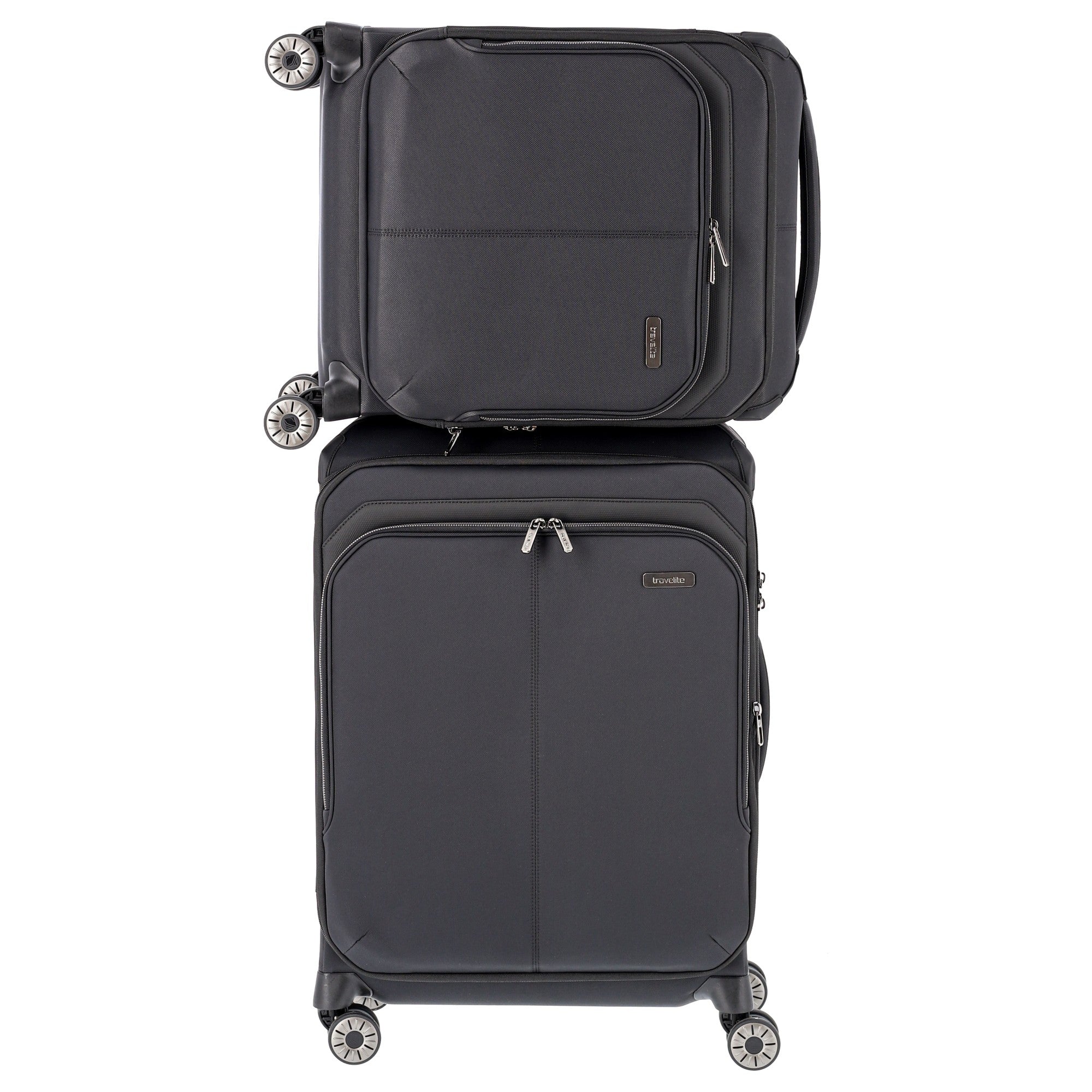 Découvrez le Travelite Priima Trolley de cabine à 4 roues dans la couleur élégante noire. Ce trolley allie un design moderne à une fonctionnalité exceptionnelle et est le compagnon idéal pour vos voyages. La construction innovante en fibre de verre assure une stabilité et une durabilité remarquables, vous permettant de compter sur la robustesse de ce chariot de voyage.