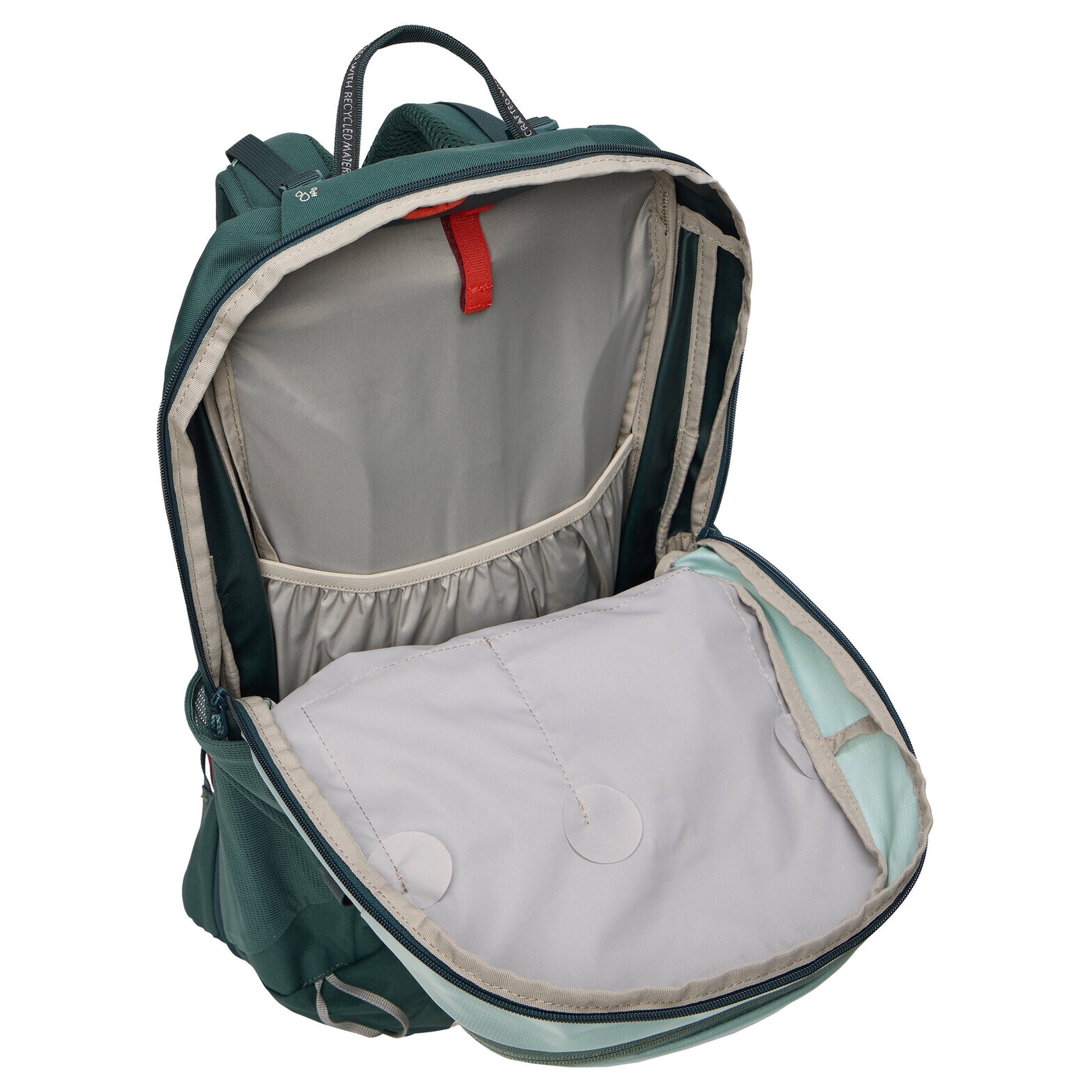 - Matériau – matériau extérieur robuste, déperlant et résistant à la saleté, principalement en polyamide recyclé avec une finition écologique Eco Finish